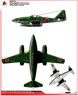 Nakajima Ki-201 Karyu – reaktyvinis gaudytojas/naikintuvas-bombonešis [Japonija, 1945 nebaigtas] (įtakotas vokiško Messerschmitt ME-262 Schwalbe)
