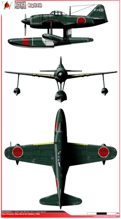 Kawanishi N1K Kyōfū /N1K-J Shiden – Laivyno hidro-naikintuvas / sausumos naikintuvas / lėktuvnešinis naikintuvas [Japonija, 1943]