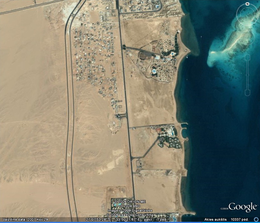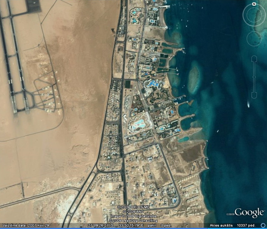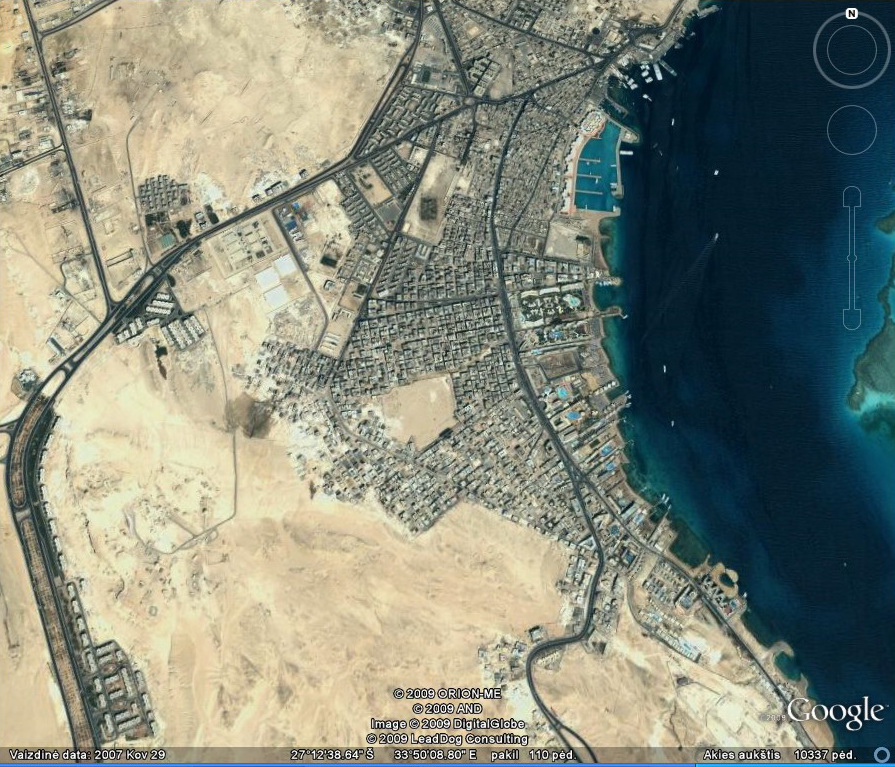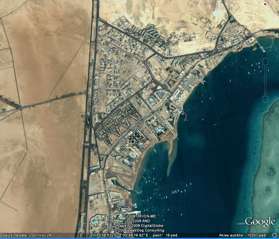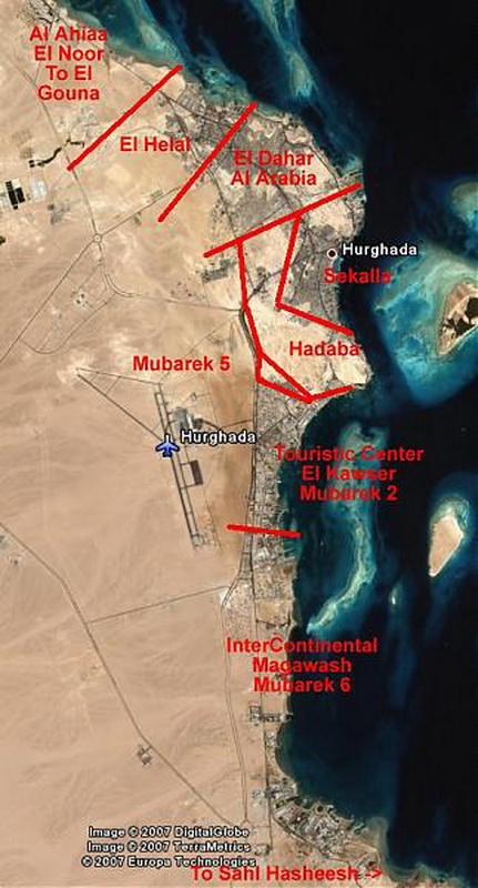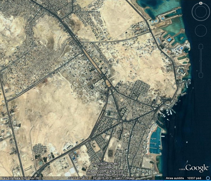 Priskrendant prie Hurgados, galima pastebėti dykumoje nutiestų susikryžiavusių kelių tinklą, kurių sankryžos netgi su žiedais. Tai mane ganėtinai nustebino pirmą kartą, nes nesupratau , kas tai yra. Atskrendant antrą kartą, dalis tų kelių suformuotų stačiakampių jau buvo užstatyta, ir pagaliau aš suvokiau – dykumoje jau nutiestos būsimojo miesto gatvės, telieka kvartalus užstatyti namais 😉