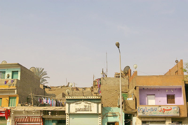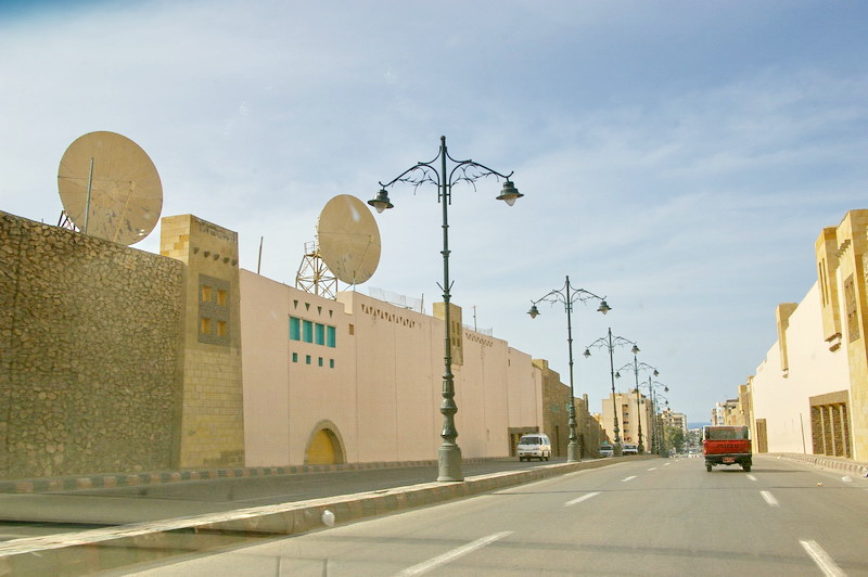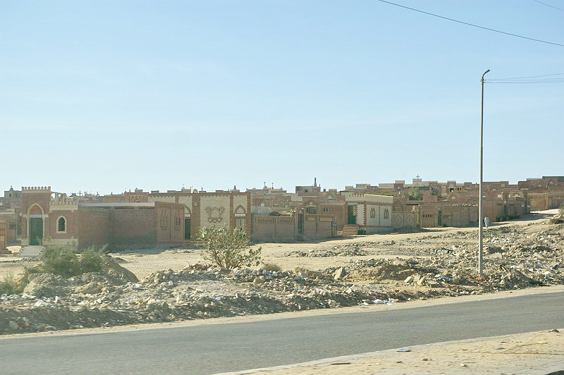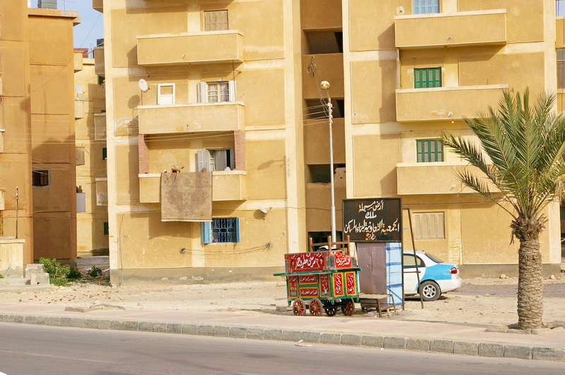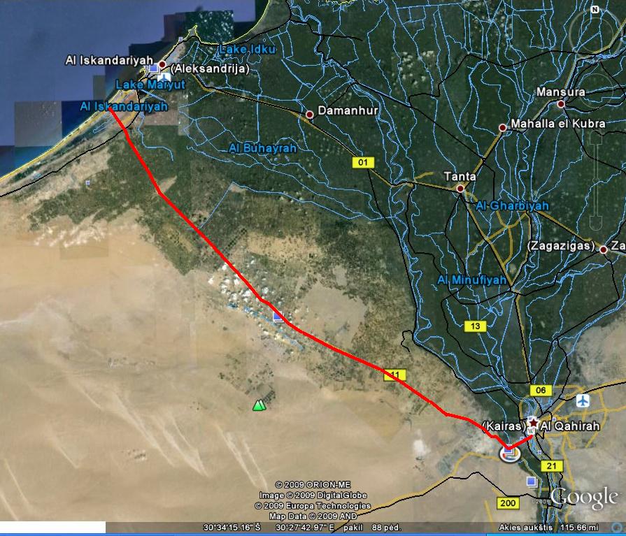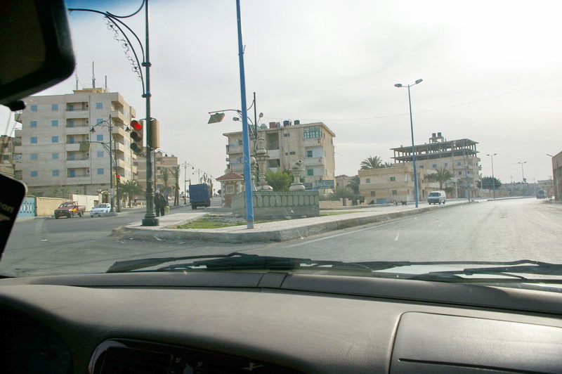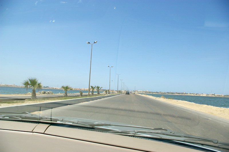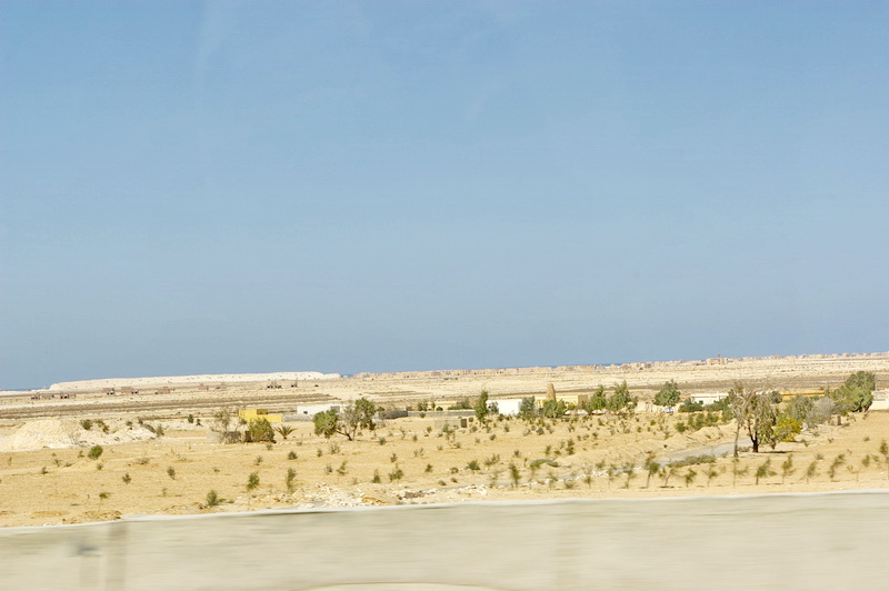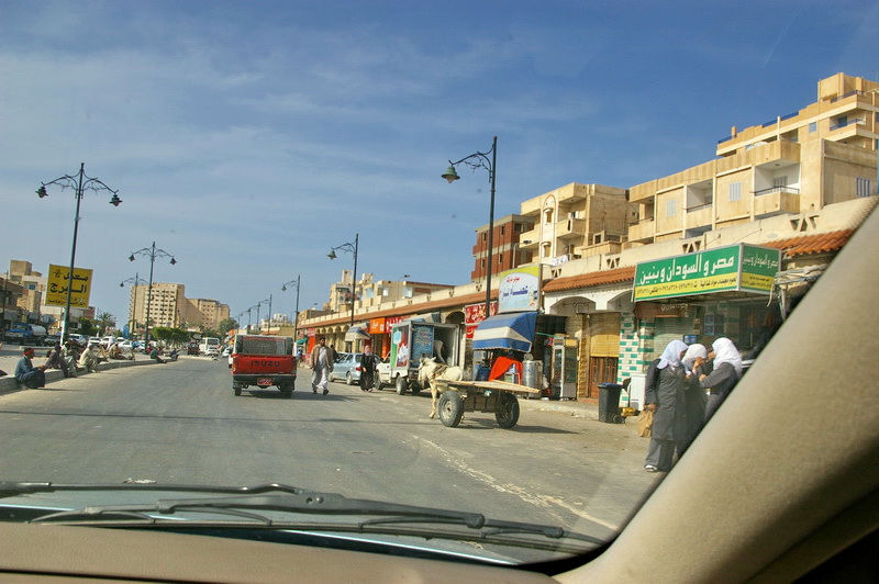 Pasiekus Aleksandrijos pakraščius, iš apmokamos autostrados išvažiuojama per labai gražius vartus. Tačiau į pačią Aleksandriją iš esmės neužsukome, o jos pakraščiu išvažiavome į kelią link Marsi Matrucho. Kelias eina lygiagrečiai Viduržemio jūros krantui, kažkur 0,5-1km atstumu, o pakrantė užstatyta vilų ir daugiabučių namų kvartalais. Aptverti tvoromis, jie skirti Egipto turtingųjų vasaros poilsiui. Kai kur tarp tų poilsiaviečių įsiterpę kariniai objektai su radarais ar poligonai. Kur-ne-kur matyti kažkokių medžių planatacijos ir vietinių gyventojų lūšnos.