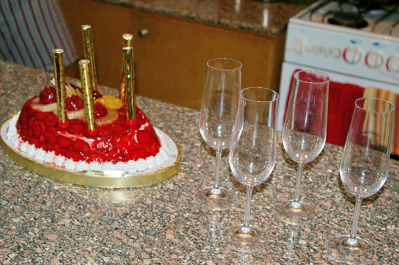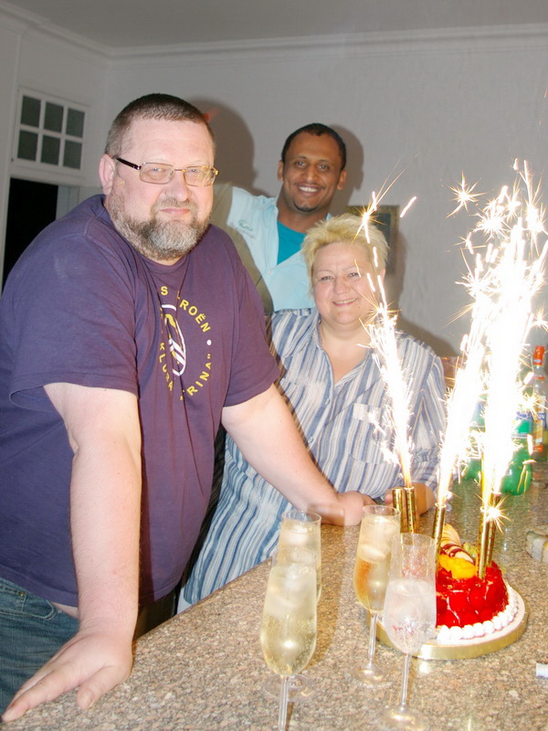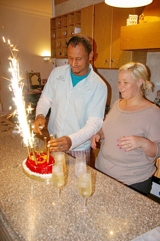 Kadangi laukė tikrai ilgas kelias, buvo numatyta išvažiuoti naktį, kol kelias Hurgada-Kairas nelabai apkrautas, o ir policija dar nėra pastačiusi savo greičio matuoklių, t.y. galima mauti kiek awto traukia. Bet prieš tai atšventėme mano gimtadienį – kaip priklauso, su tortu ir mikro-fejerverku (nes Egipte fejerverkai yra uždrausti dėl saugumo – nei tai egiptiečiai išsisprogdintų juos beleisdami, nei tai antiteroristinė kova čia kalta).