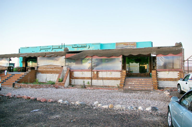 Kaip jau minėjau, išvažiavome naktį, kad kiek galima daugiau nuvažiuoti tuščiais keliais iš Hurgados į Kairą. Taip ir buvo, mynėme, kiek tilpo, beveik tuščia autostrada, tik vienoje vietoje užmigęs arabas pradėjo savo sunkvežimuku kreivuliuoti po kelią, teko daryti avarinį stabdymą. Taip varydami, privažiavome pakelės užeigą, kur stoja tik vietiniai vairuotojai, todėl ji bent perpus pigesnė, nei ten, kur stoja turistai 😉 Kol pavalgėme ir išgėrėme arbatos, nes kavos vietiniai darytim nemoka, vienintelis dalykas, kurį verta užsisakyti – kapučino, kurį daro iš pusfabrikačių ir sugadinti nesugeba. O va arbata jų tai skani, tiok cukraus deda beprotiškai daug. Bet jei mato, kad nevietinis – nededa, o atneša cukrinę. Bevalgant prasidėjo saulėtekis, tačiau rytas buvo ganėtinai vėsus, net susitraukėme.