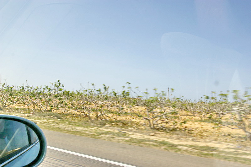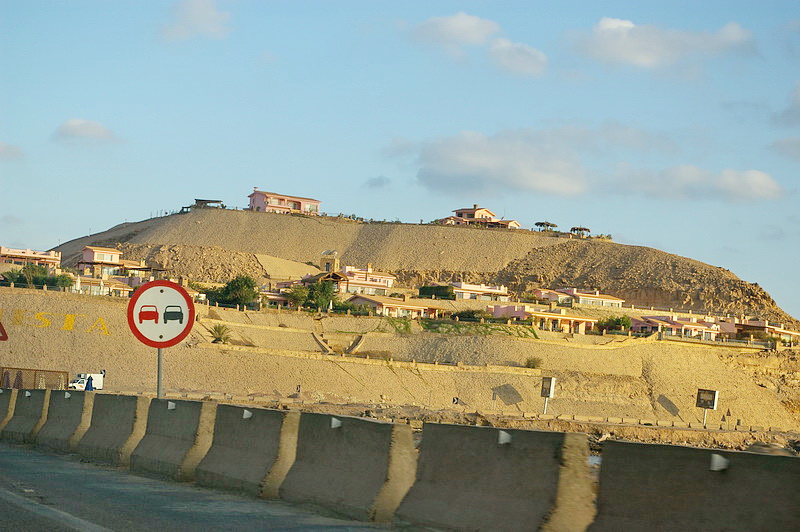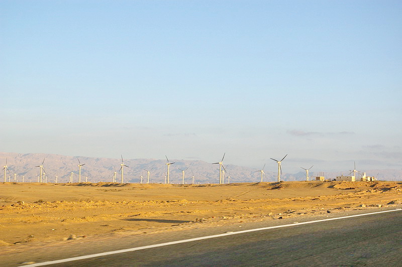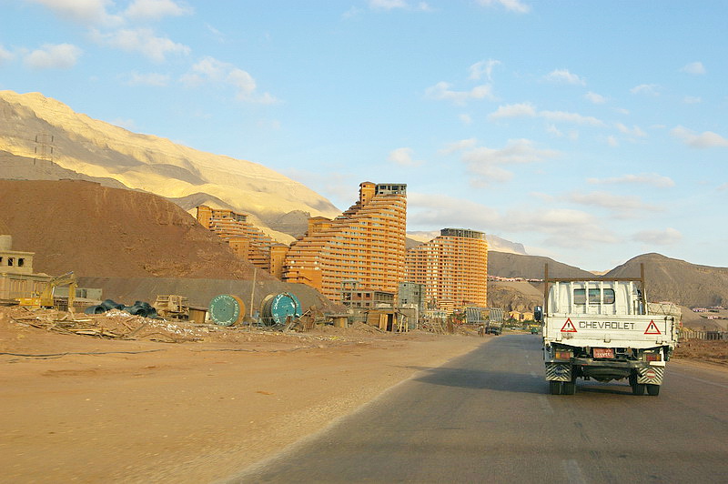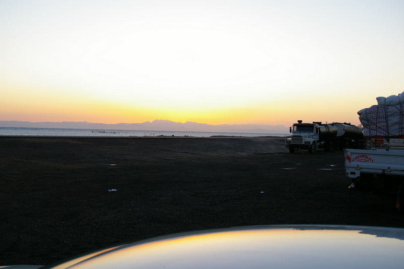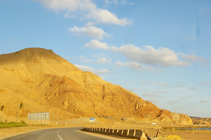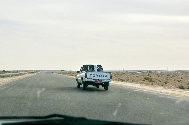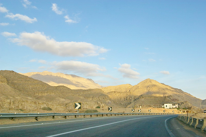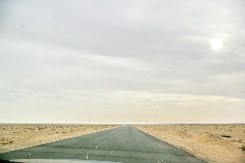 Pasistiprinę numynėme toliau. Kadangi išaušo, buvo galima pasižvalgyti po dykumą, kuri čia kiek kitokia, nei važiuojant Kenos kryptimi. Pakelėje kai kur išsimėtę kurortai – kai kada poros aukštų pastatų ar vilų kompleksai, kai kada milžiniški viešbučiai. Čia, nutaikęs ilgą lygų ir tuščią kelio gabalą, žentas man pademonstravo, ką gali kinų avtropromo stebuklas. Mano brangiausioji, tuo metu prabudusi ant užpakalinės sėdynės, žado netekusi su siaubu stebėjo dviejų durnių džiaugsmą 😉 Galiu pasakyti tik tiek, kad daugiau tokių triukų nebandėme, greitis neviršijo 160-180km/val, ir tai tik gerose atkarpose.