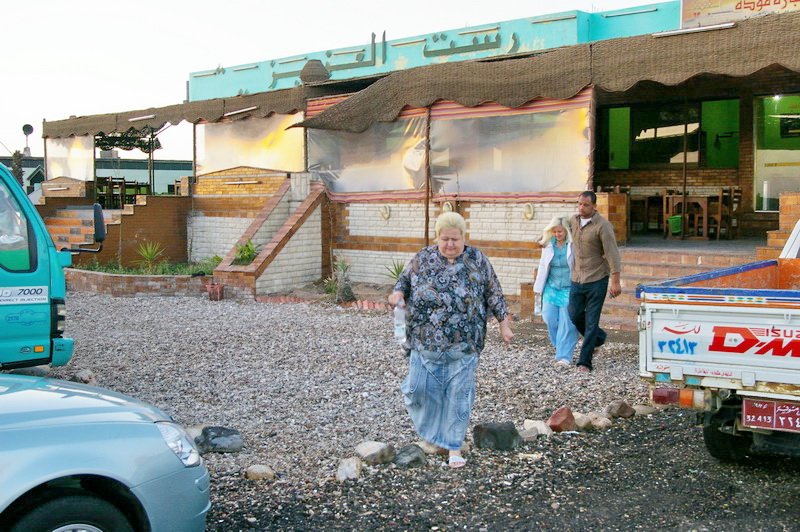 Pasiekus Marsi Matruchą, žentas per pažįstamų pažįstamus susirado žmogų, kuris paaiškino, kaip išvažiuoti į dykumos kelią. Kol laukėme to gido, žentas griežtai prigrasė jokiu būdu ne tik kad nelipti iš mašinos, bet ir neatidaryti tamsintų langų, kad neapturėti kokio skandalo dėl nepridengtų plaukų – buvome neturistinėje zonoje. Ir tik įvažiavus į turistams skirtą miesto zoną, galėjome išlipti, išgeti arbatos, moteriškės padarė nedidelį šopingą po turgų. Miestas labai tradicionalistinis, moterys ne tik kad su skaromis, bet dauguma ir „maišuose“ (mes jas vadiname „akutėmis“).