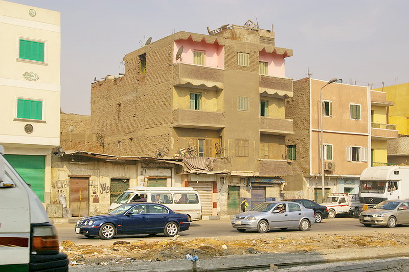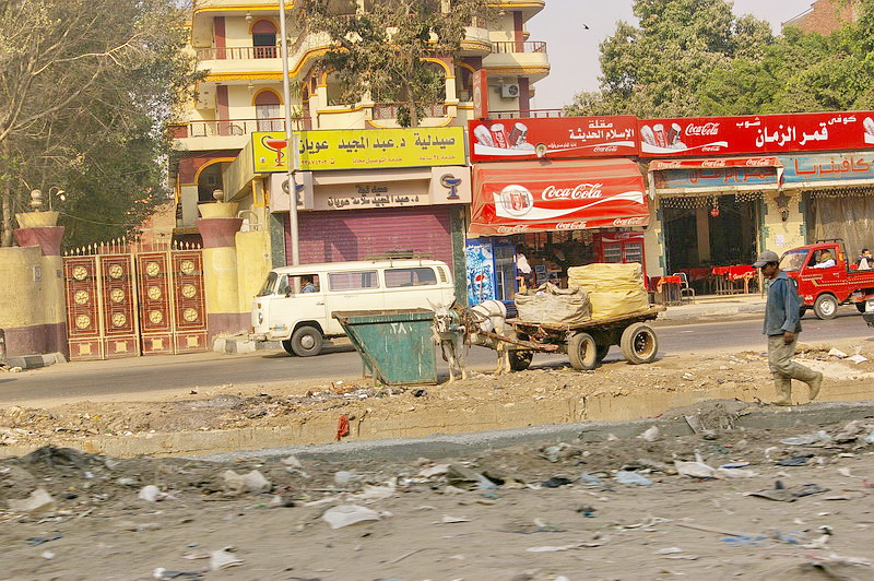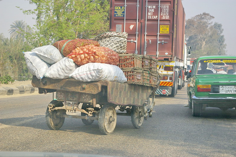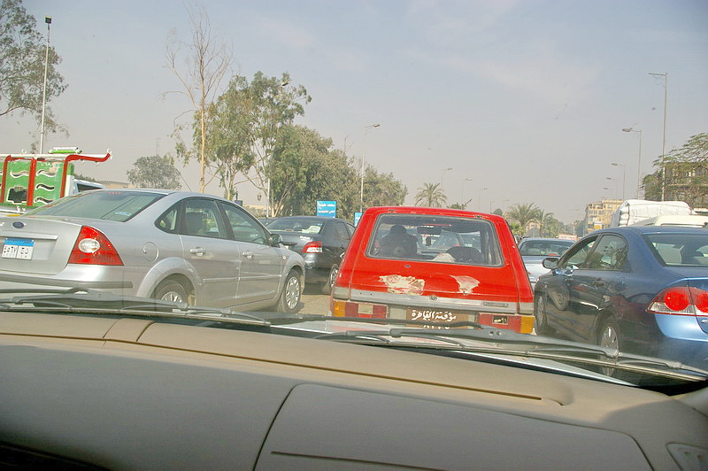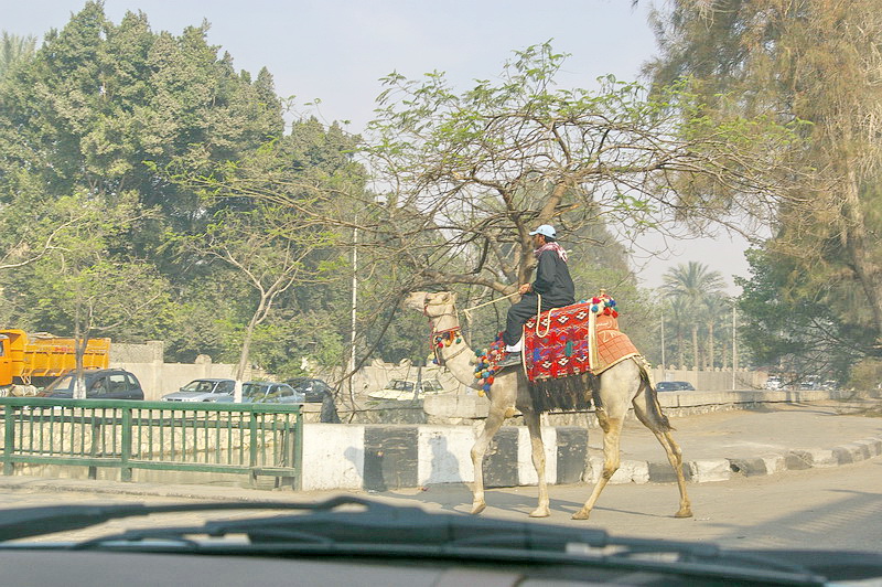 Prizvimbus Kairą, įsivėlėme į jo rytinius kamščius, kur vienoje košėje ir lengvieji automobiliai, ir turistų autobusai, ir sunkvežimiai, ir asilais kinkyti vežimai, o tarp eilių nardo motociklininkai. Net kupranugariais vykstantys į savo darbą prie piramidžių arabai pasitaiko. Vienžod, awto-beprotnamis, galintis išvaryti iš proto kokį vokietį ar estą 😉