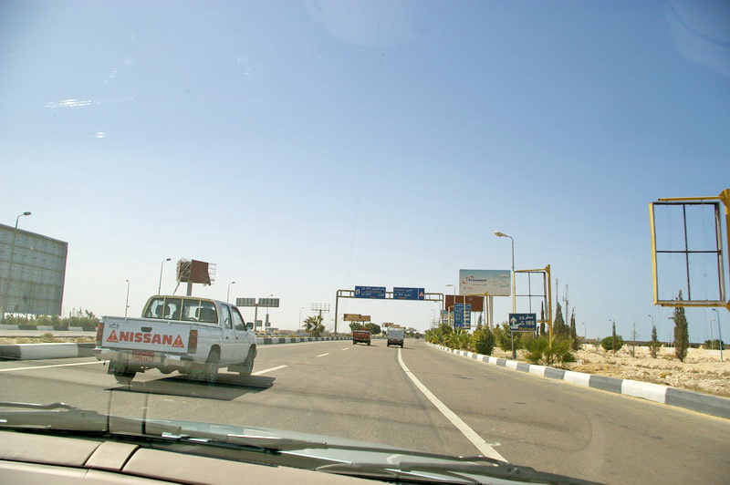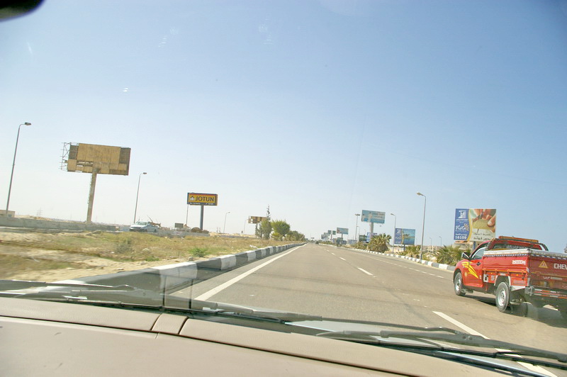 Egipte dauguma kelių nemokami, tačiau yra pora autostradų, kur už pravažiavimą tenka mokėti. Tačiau tai nėra dideli pinigai – už 150km atkarpą lengvajam automobilui – 2,5LT. Tačiau tai labai palengvina važiavimą, nes autostrada tikrai plati ir gera. Pakeliui, jau netoli Aleksandrijos, yra užeiga su mini zoologijos sodu, kuriame mes buvome sustoję pirmos savo kelionės metu. Sustojome ir dabar, pastebėjau porą naujienų – ant sienos atsirado liūto kailis (tipo „Tai dykumoje tu karalius, o čia – viso labo dekoratvinis elementas“), viename aptvare – DIDŽIULĖ kiaulė (kiba musmulmonams demonstruoja, kaip jų nekenčiamas gyvis atrodo?). Užeigoje skaniai (tačiau nepigiai – turistinė zona) pavalgėme.
