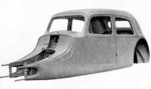 1934 metai buvo aerodinamikos metai, pažymėti Chrysler Airflow ir Tatra 77 pasirodymu. 7CV taip pat buvo šio parado dalis, nors ne taip radikaliai stilizuotas, kaip ankstesni du automobiliai. Kur kas radikaliau buvo tai, ką Traction Avant slėpė po savo kailiu, butent šasi. 7CV ugniasienė ir plokščia grindų dalis buvo dideli ruošiniai iš štampuoto plieno. Tvirta ugniasienė apėmė variklį, nueidama priekin, kad prisijungti sudėtingą priekinę pakabą. Papildomos štampuoto plieno detalės šonų apačioje ir viršuje formavo tvirtą karkasą, prie kurio buvo tvirtinamos šoninės plokštumos.