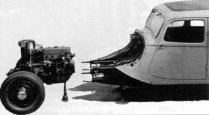 7CV 1.3ltr variklis suko priekinius ratus per priekyje sumontuotą pavarų dėžę su diferencialu. Mažytis variklis buvo sumontuotas išilgai priekinės ašies, ir galia buvo perduodama į nepriklausomos pakabos priekinius ratus per pusašius. Torsioninės juostos, Dr.Ferdinand Porsche patentuotas išradimas, buvo naudojamos vietoj spyruoklių, o pavieniai lenkti vamzdiniai smūginiai amortizatoriai ant kiekvieno rato saugojo automobilį nuo lingavimo. Užpakalinė pakaba buvo taip pat moderni tiems laikams – buvo naudojama vamzdinė aklina ašis su transversinėmis torsioninėmis svirtimis.