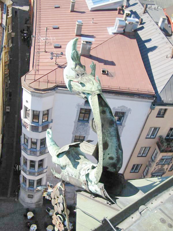 Drakonas iš viršaus filosofiškai žiūri į miestą. Kaip ir mes...