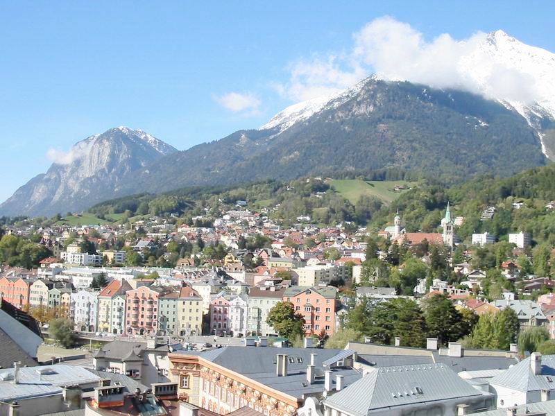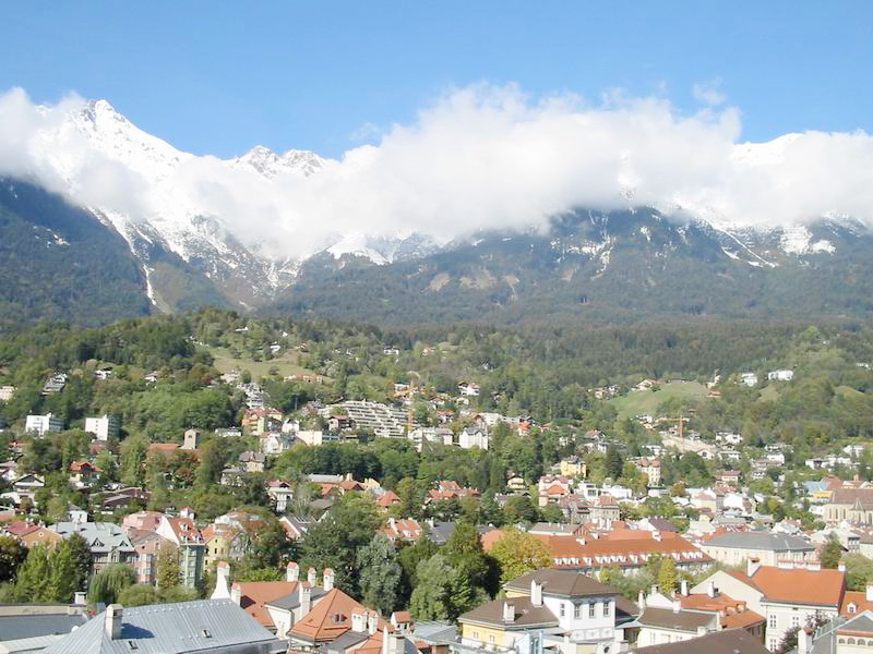Innsbruck oro uostas suspaustas tarp kalnų |