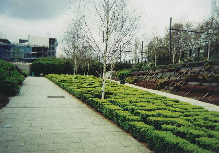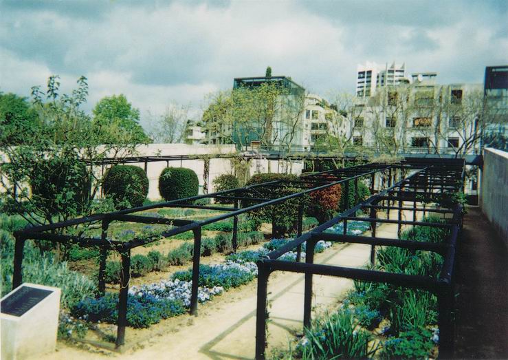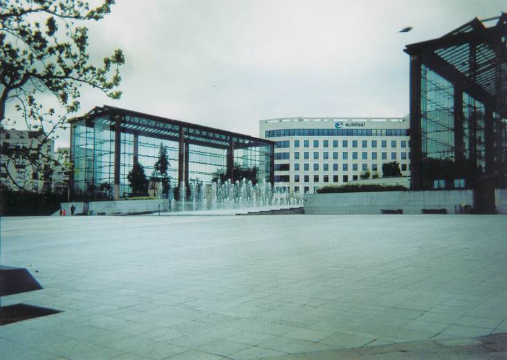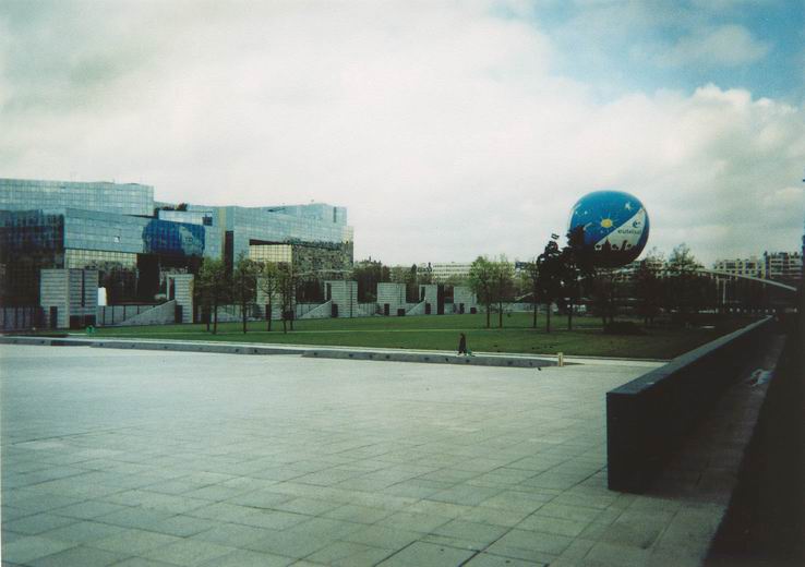 Šalia parko įsikūrusi telekomunikacijų bendrovė Eutelsat, kurios reklaminis balionas tai kyla į padangę, tai leidžiasi. Didžiulis veidrodinis pastatas - Georges Pompidou Europos ligoninė |
