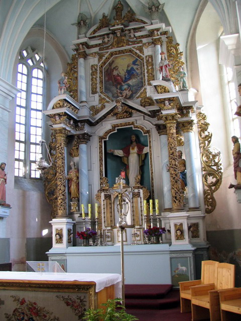 Besisukančio altoriaus arka, uždengta Marijos paveikslu |