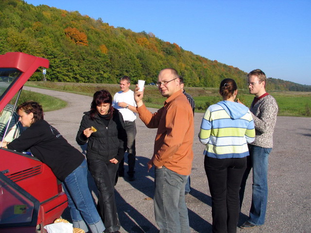 Po Veliuonos buvo nutarta pakelėje sustoti ir užkąsti - jau buvo ketvirta valanda vakaro, kelyje buvome šeštą valandą