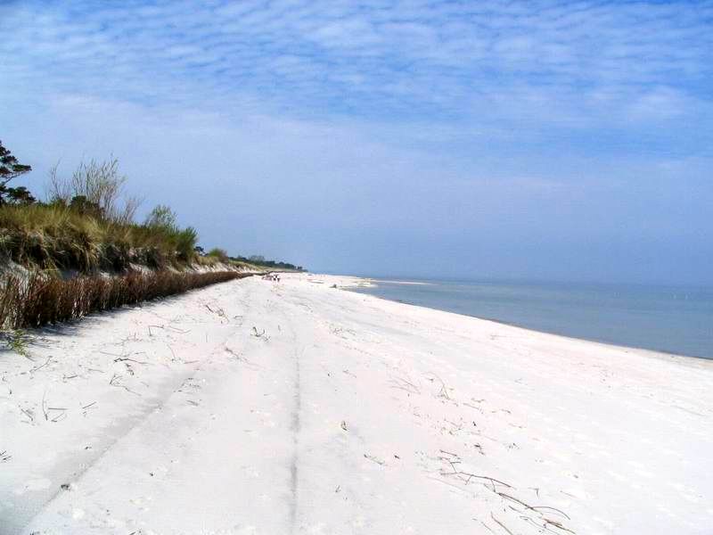| Už kairėje esančių medžių Baltijos jūra, dešinėje - irgi ji, tik vadinama Pucko įlanka. Smėlio juostos plotis - gal kokie 700 metrų... |