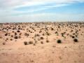 Ant kopų tolumoje pastatyta tvora, stabdanti smėlio plitimą