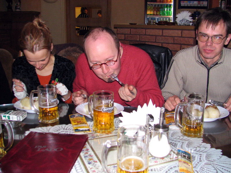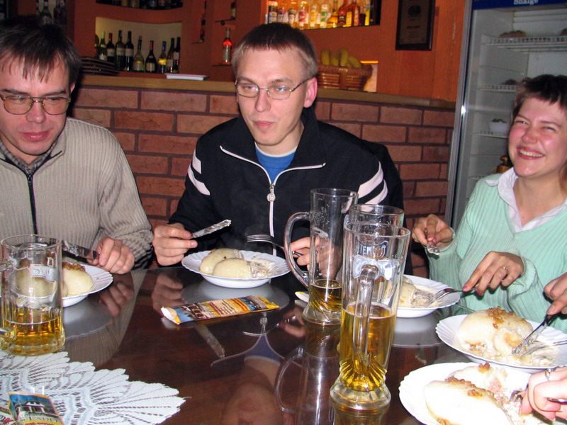nors lygtai buvo pasižadėję (užpernai tilpome). Teko lėkt į užeigą "Pas Lado", kur susėdome ir prisicepelininome.