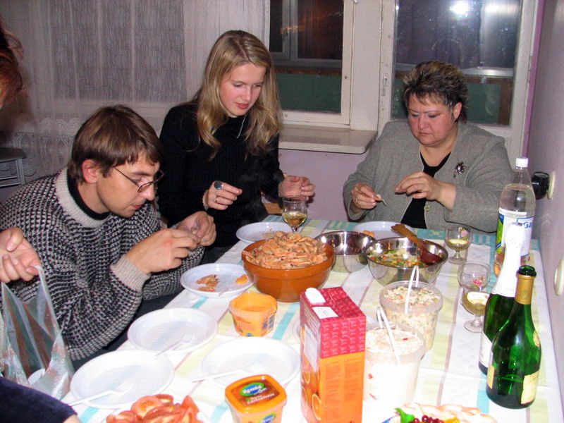 Paskutinis mūsų kelionės taškas - prašmatnūs kolegos Vovkos apartamentai, kuriuose entuziastingiausieji pratęsė bendravimą. Buvo sumąstyta paskanauti krevečių, kurios buvo visai neblogai.