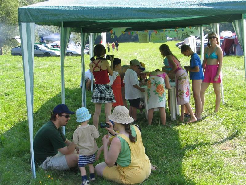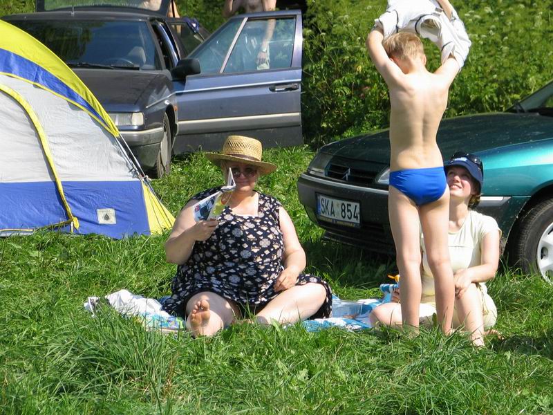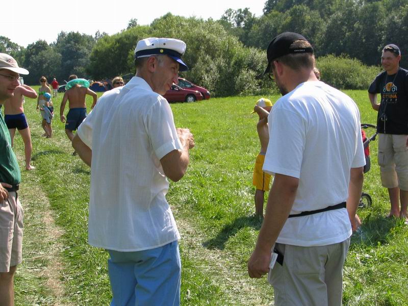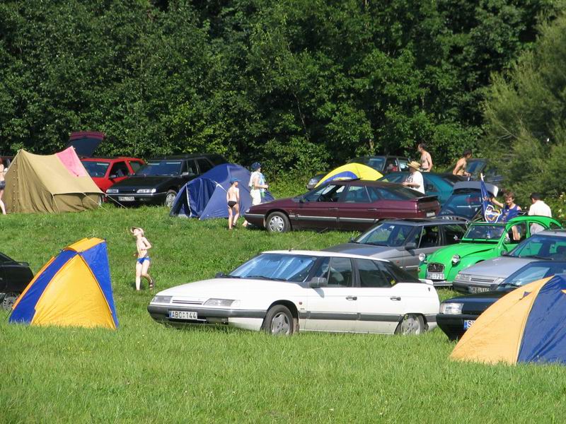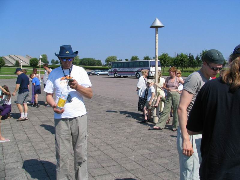 Alvydas pasipuošęs kepure su 2CV ženkliuku ir geria citro-limonadą |