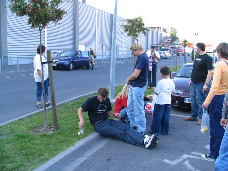 O tuo metu lenkai bando atsakyti į viktorinos klausimą, kiek gi metų klevui, augančiam Olštyne, Gegužės Pirmosios gatvėje... ;-) |