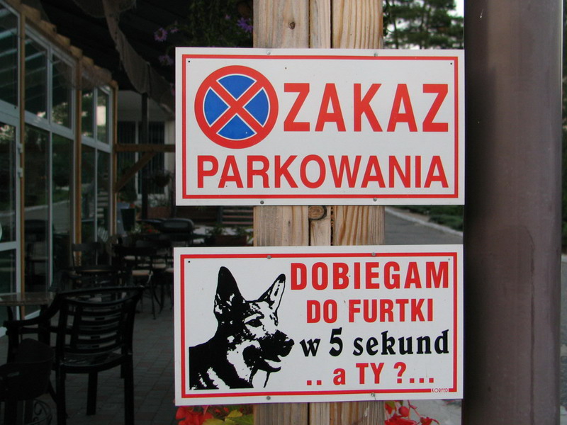 Viršuje: "Draudžiama parkuotis"; apačioje: "Aš pribėgu prie vartelių per 5 sekundes. O tu? |